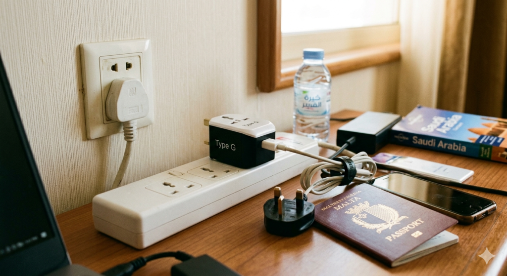 Saudi Arabia commonly uses Type G electrical plugs, which are similar to those used in the United Kingdom.